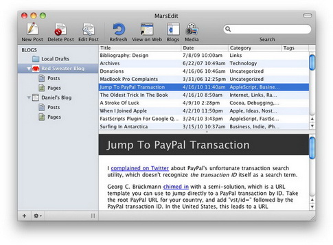MarsEdit支援離線管理幾乎所有的blog,常用的wordpress,blogger,movable type